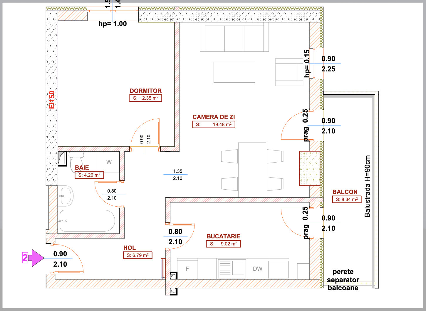 Apartament spațios cu 2 camere la parter, cu orientare către nord. Compartimentare inteligentă și lumină naturală abundentă.