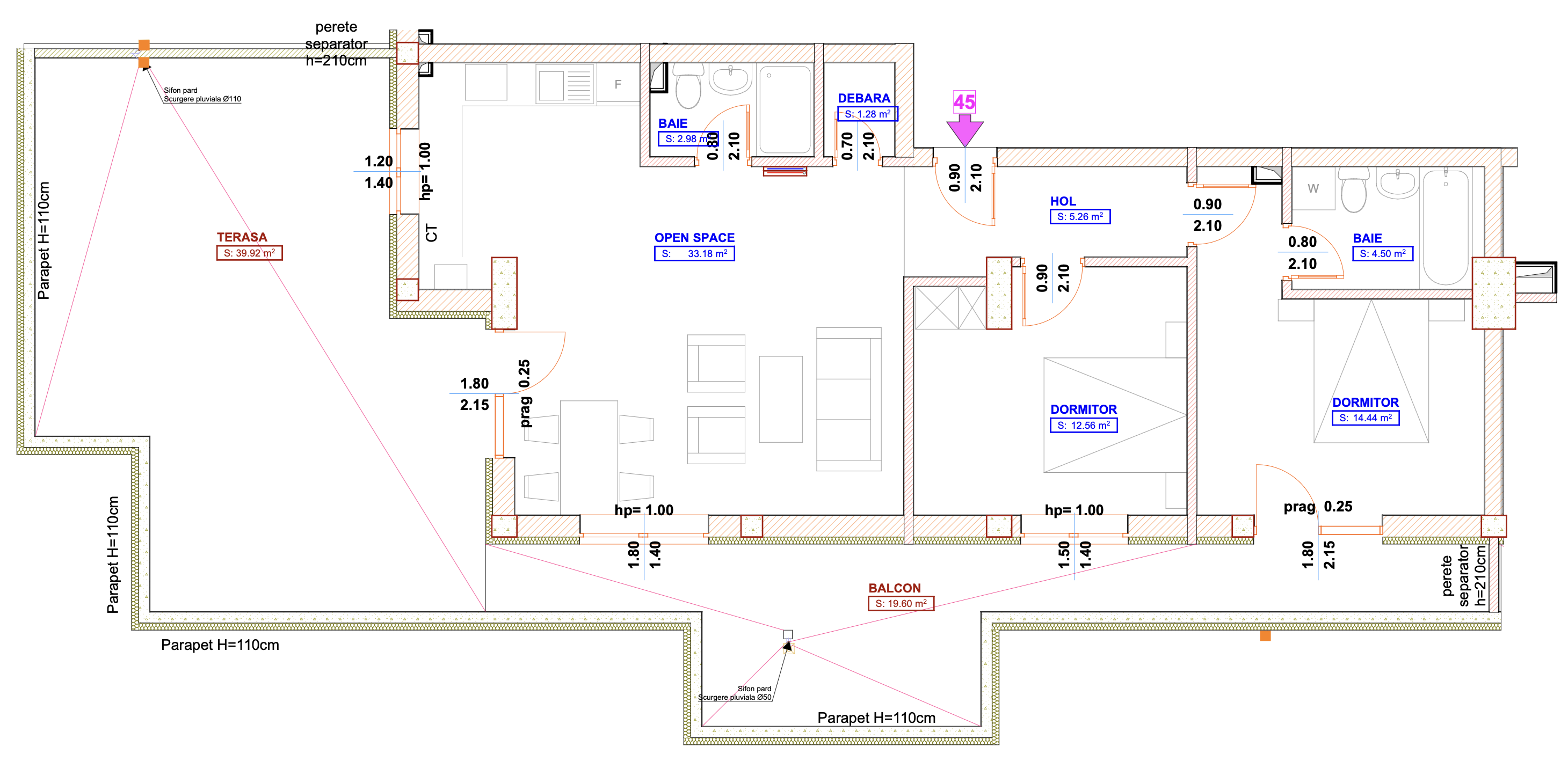 Penthouse premium cu 3 camere la etajul 6, cu orientare către sud. Cea mai exclusivă unitate din ansamblu cu spațiu generos și finisaje de excepție.