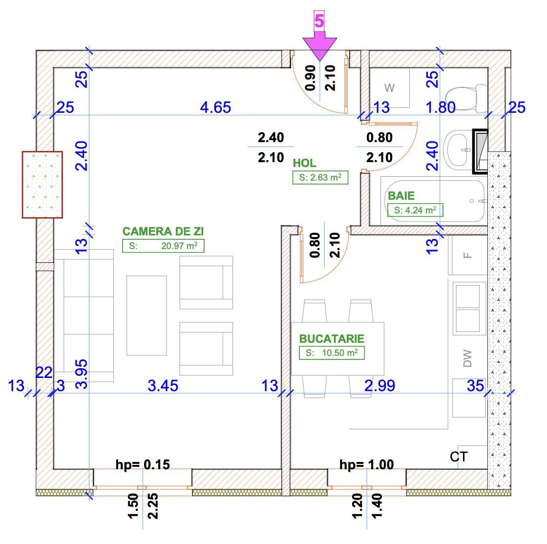 Garsonieră elegantă la parter cu orientare către est. Ideal pentru persoane singure sau cupluri tinere.